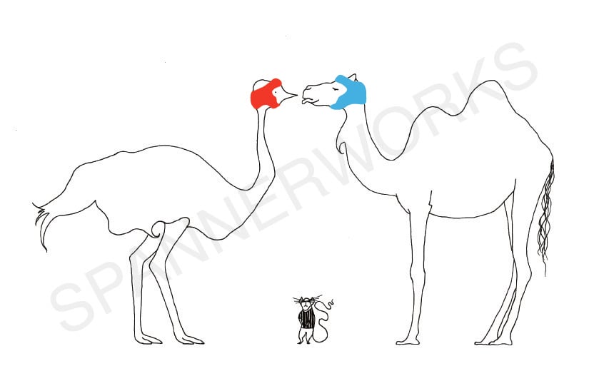 'Ostrich Vs Camel' A4 Heavy weight Print